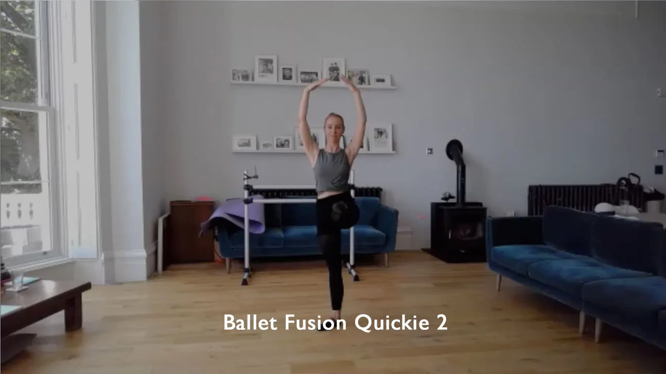 A quickie 30 minute, easy to follow ballet fitness class. Starting at the barre, we work the leg and lower back muscles. Moving into the centre for some light cardio, core and arm work. Then onto the floor for glute activation and stretching.